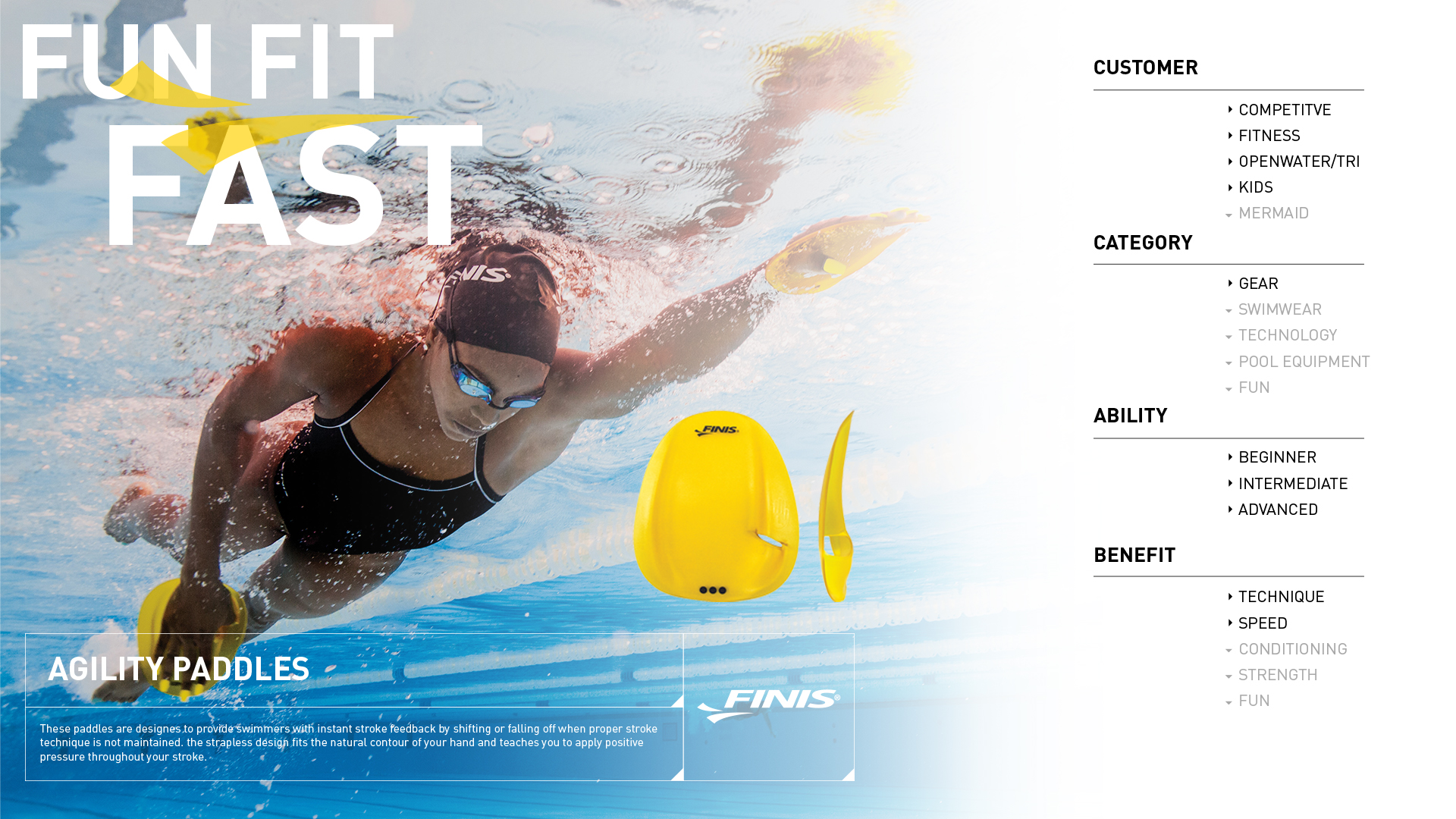 صُممت مجاديف أجيليتي لتزويد السباحين بتقييم فوري لحركاتهم، حتى بعد لفة واحدة فقط! مصنوعة الآن من مادة طافية جديدة مثالية لجميع السباحين، من المبتدئين إلى المحترفين. يتناسب تصميمها بدون أحزمة مع شكل يدك الطبيعي، ويعلمك كيفية تطبيق ضغط إيجابي طوال حركة السباحة. إذا لم تحافظ على حركة سباحة صحيحة، سينبهك المجداف بذلك من خلال انزلاقه أو سقوطه. سيساعدك هذا المجداف البسيط على التركيز على أسلوبك، وبناء قوتك، وتعزيز إحساسك بالماء.