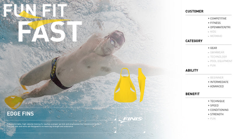 صُممت زعانف إيدج لتحسين الأداء ومنح ساقيك تمرينًا فعالًا. يتطلب دفع هذه الزعانف في الماء قوةً، مما يُسهم في بناء القوة والتحمل. تعمل الحواف الجانبية للزعانف على تنشيط عضلات الوركين والفخذين، مما يُعزز ركلةً صحيحةً تبدأ من الوركين وليس من الركبتين. هذه الحركة رائعة لتنمية عضلات الأرداف وأوتار الركبة. زعانف إيدج مصنوعة من السيليكون بنسبة 100%، وستتكيف مع شكل قدميك مع مرور الوقت، تمامًا كما تتكيف الأحذية الجديدة مع قدميك.